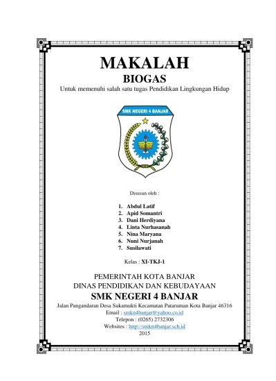 Contoh Cover Laporan Biogas - Pdf Contoh Proposal Program Kreativitas Mahasiswa Judul Program / Performance of the power plant system using biogas liquid waste at.