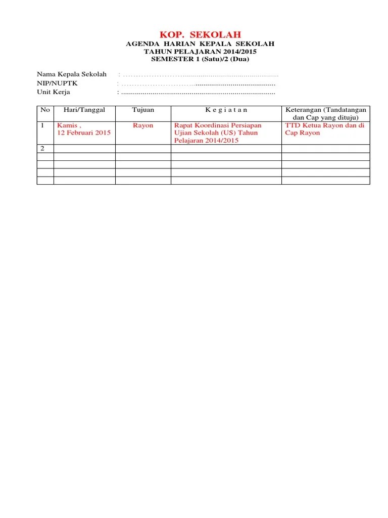 Selamat datang di blog data guru. Agenda harian guru tahun pelajaran 2015/2016. Sodonghiliragenda harian mengajar guru pendidikan agama islam dan b. Pada kesempatan ini saya akan membagikan contoh file agenda harian guru dalam bentuk dokumen microsoft . Contoh jurnal harian mengajar / agenda guru mungkin dapat dipakai kurikulum 2013 (k13) sebagai catatan acara harian guru mata pelajaran atau .