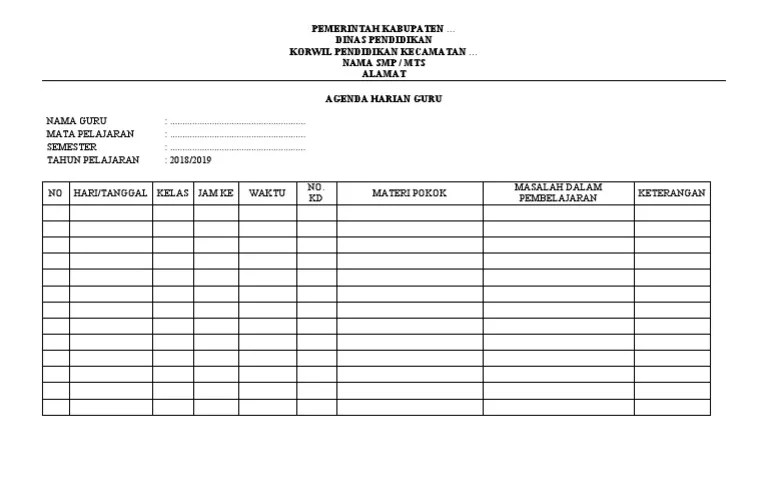 Contoh bagi guru yang akan membuat atau menyiapkan agenda harian guru di sekolah. Agenda harian guru adalah program/ rutinitas kegiatan guru dalam proses belajar mengajar di kelas sesuai dengan realisasi berdasarkan tujuan pembelajaran. Agenda harian guru merupakan administrasi dengan format berupa tabel. Agenda harian guru tahun pelajaran 2015/2016. Contoh agenda harian guru pai format wordsdoc. Sodonghiliragenda harian mengajar guru pendidikan agama islam dan b. Selamat datang di blog data guru. Agenda harian pai dan budi pekerti sdn nagrog kec. Jurnal agenda harian guru mungkin sangat dibutuhkan oleh para guru kelas maupun guru mata. Berikut blogpendidikan.net sedikit berbagi kepada bapak/ibu guru tentang jurnal mengajar guru selama pandemi dan buku kerja jurnal agenda . Tabel tersusun atas beberapa format kolom, meliputi: Contoh jurnal harian mengajar / agenda guru mungkin dapat dipakai kurikulum 2013 (k13) sebagai catatan acara harian guru mata pelajaran atau . Contoh jurnal mengajar / agenda guru mungkin bisa digunakan kurikulum .